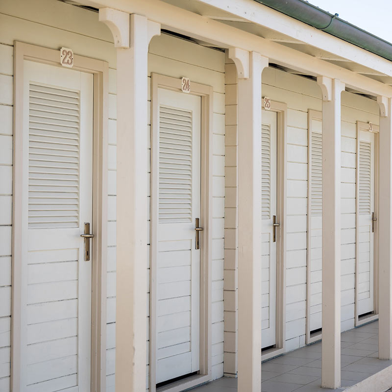 Comode, eleganti e spaziose cabine situate a due passi dalla spiaggia.
