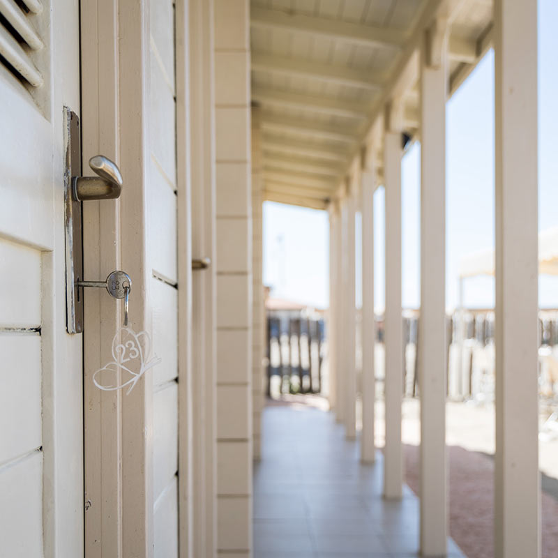 Sono perfette per riporre la sera giochi da spiaggia voluminosi, asciugamani, costumi da bagno e tutto il necessario per le vostre giornate al mare! Ogni cabina ha un ombrellone assegnato sulla spiaggia